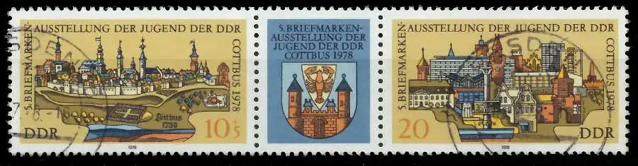 10 + ZF + 20 Ausgabe Briefmarkenausstellung der Jugend in Cottbus Dreierstreifen (MichelNr.: 371, 2343, 2344)