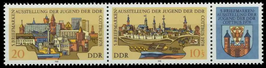 20 + 10 + ZF Ausgabe Briefmarkenausstellung der Jugend in Cottbus (MichelNr.: 375, 2343, 2344)