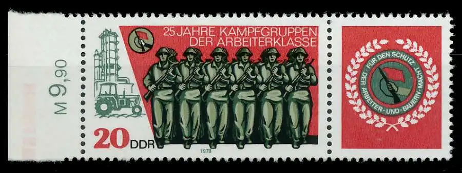 20 + ZF Wert aus der Ausgabe 25 Jahre Kampftruppen der Arbeiterklasse (MichelNr.: 388, 2357)