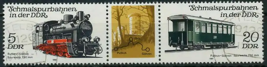 5 + ZF + 20 Zusammendruck aus der 2. Ausgabe Schmalspurbahnen 1981 (MichelNr.: 512, 2630, 2632)