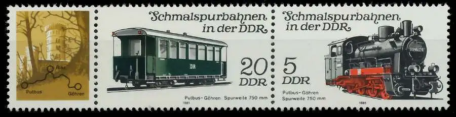 ZF + 20 + 5 Zusammendruck aus der 2. Ausgabe Schmalspurbahnen 1981 (MichelNr.: 514, 2630, 2632)