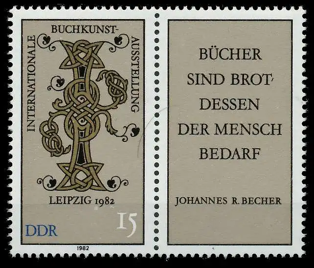 15 + ZF Wert aus der Ausgabe Internationale Buchkunstausstellung in Leipzig (MichelNr.: 528, 2697)