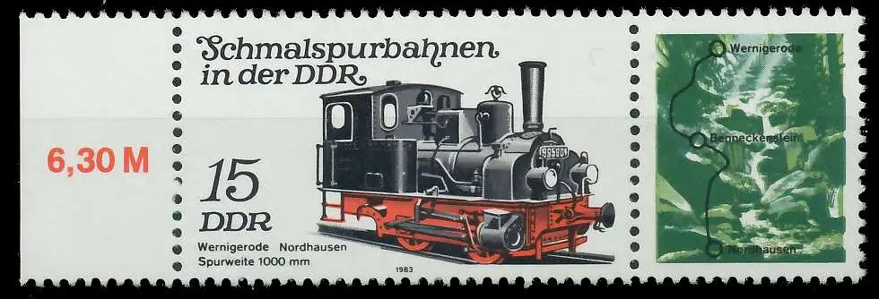 15 + ZF Zusammendruck aus der Ausgabe Schmalspurbahnen in der DDR (MichelNr.: 556, 2792)