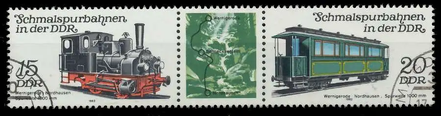 15 + ZF + 20 Zusammendruck aus der Ausgabe Schmalspurbahnen in der DDR, Dreierstreifen (MichelNr.: 557, 2792, 2793)