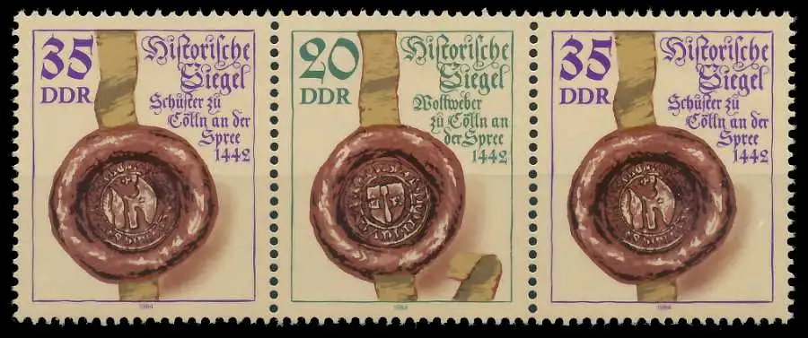 35 + 20 + 35 Zusammendruck aus der Ausgabe Historische Siegel (MichelNr.: 607, 2886, 2887)