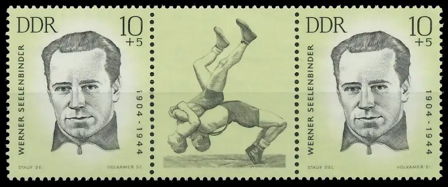 10+5/ZF/10+5 Pfg Wert aus der Ausgabe Erhaltung der nationalen Mahn- und Gedenkstätten - Werner Seelenbinder, mit anhängendem Zierfeld (MichelNr.: 81, 959)