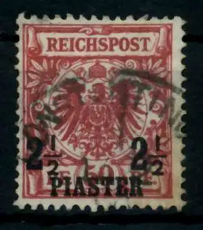 2 1/2 Piaster auf 50 Pfg Wert aus der Freimarken Reichspostausgabe 1889 mit schrägem Aufdruck der Wertangabe in türkischer Währung, einwandfrei, mit aktuellem Kurzbefund Steuer
