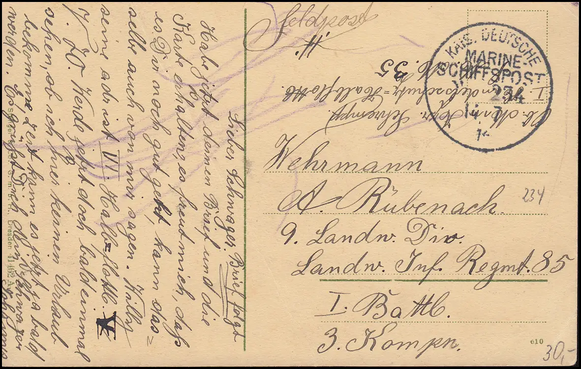 DEUTSCHE MARINE-SCHIFFSPOST No 234 Handelsschutz-Halbflotte, auf Feldpost-AK