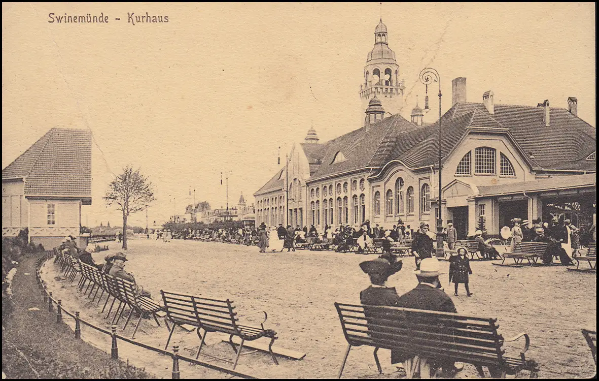 Ansichtskarte "Swinemünde - Kurhaus" gelaufen an die 9. Landwehr-Div. des Landwehr-Infanterie-Regiment 85