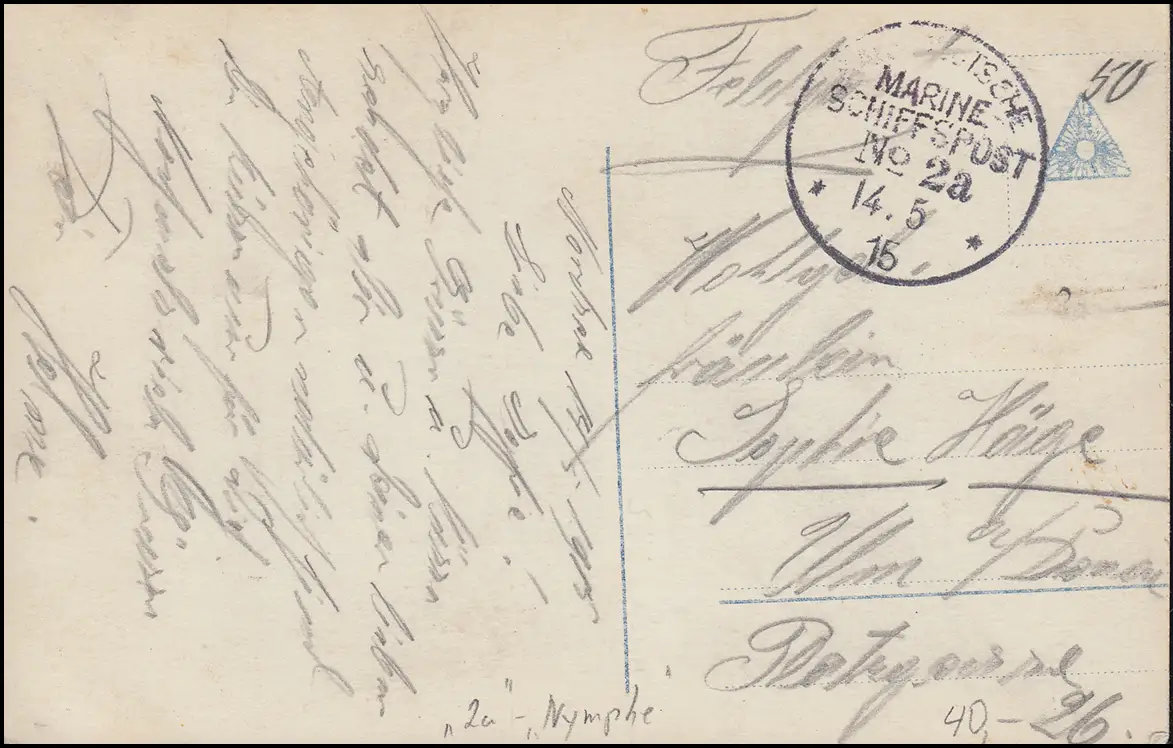 DEUTSCHE MARINE-SCHIFFSPOST No 2a - 14.5.1915 SMS Nymphe auf Propaganda-AK
