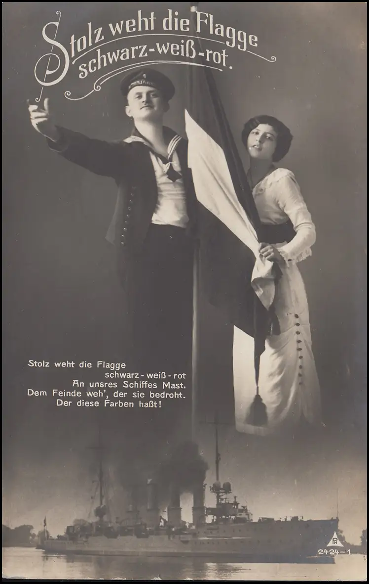 Ansichtskarte "Stolz weht die Flagge schwarz-weiß-rot. ..." als Feldpostkarte nach Ulm