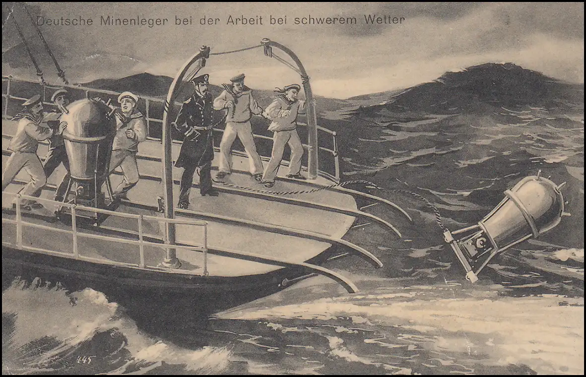 Ansichtskarte "Deutsche marineleger bei der Arbeit bei schwerem Wetter"
