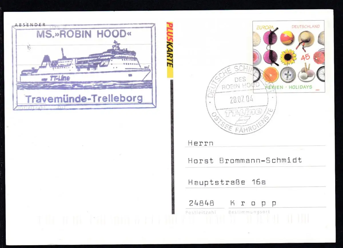 DEUTSCHE SCHIFFSPOST DES ROBIN HOOD TT-Line OSTSEE-FÄHRDIENSTE 28.07.04 +