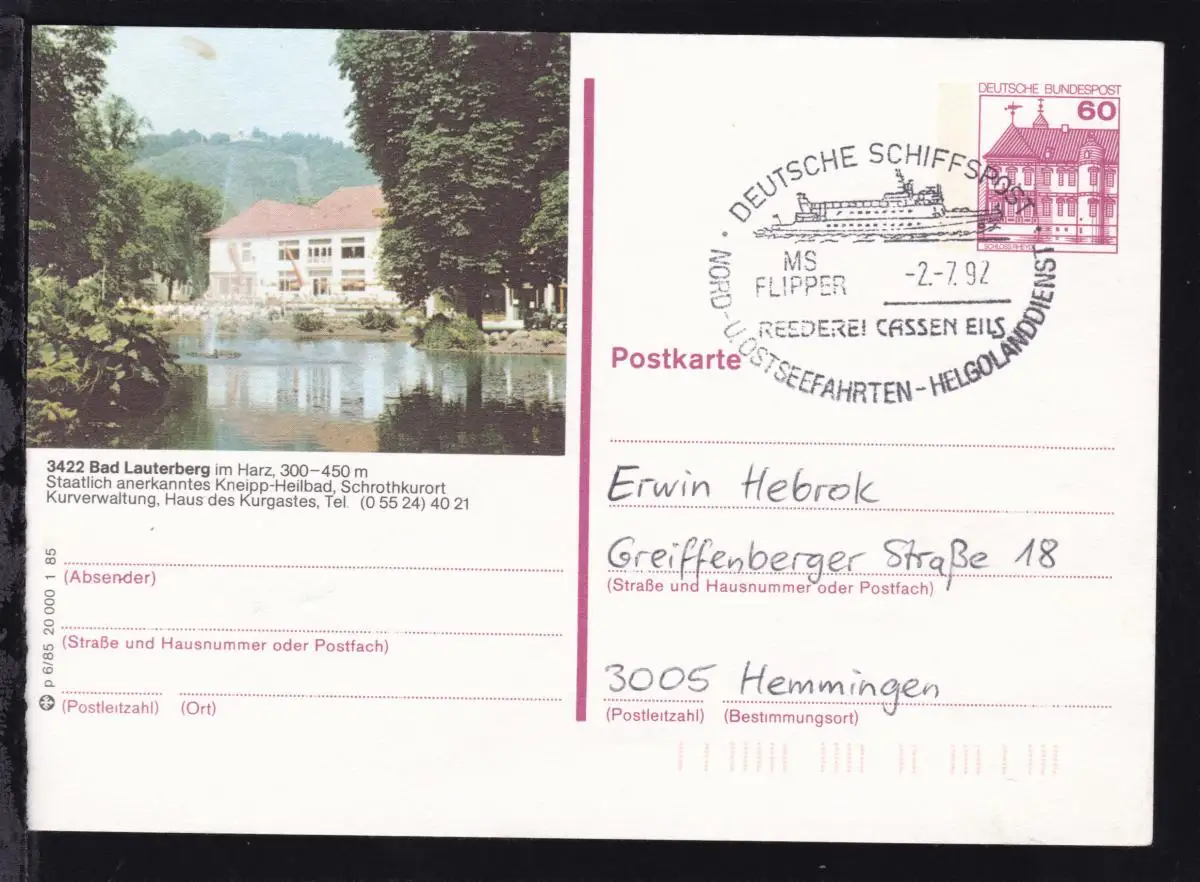 HELGOLANDDIENST 2.7.92 auf Ganzsache