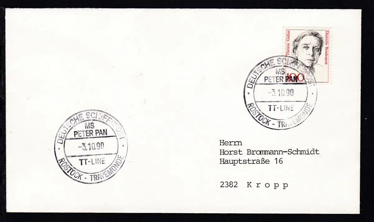 DEUTSCHE SCHIFFSPOST MS PETER PAN TT-SAGA-LINE TRAVEMÜNDE-TRELLEBORG 17.01.85