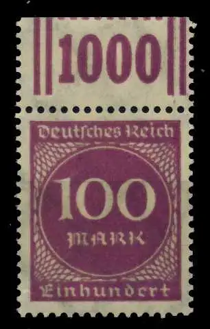 100 M Wert aus der Freimarkenausgabe Ziffern im Kreis, verkürzter Oberrand