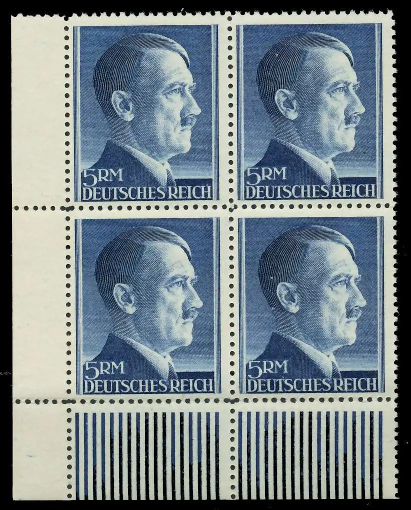 5 RM Wert aus der Freimarkenausgabe Adolf Hitler in der Zähnung L12 1/2