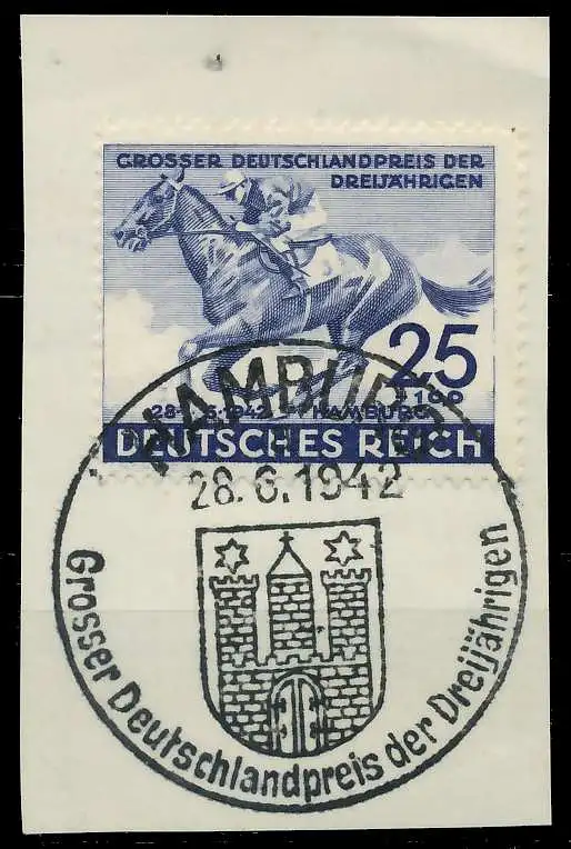 25+100 Pfg Wert Großer Deutschlandpreis der Dreijährigen (Das blaue Band), Sonderstempel
