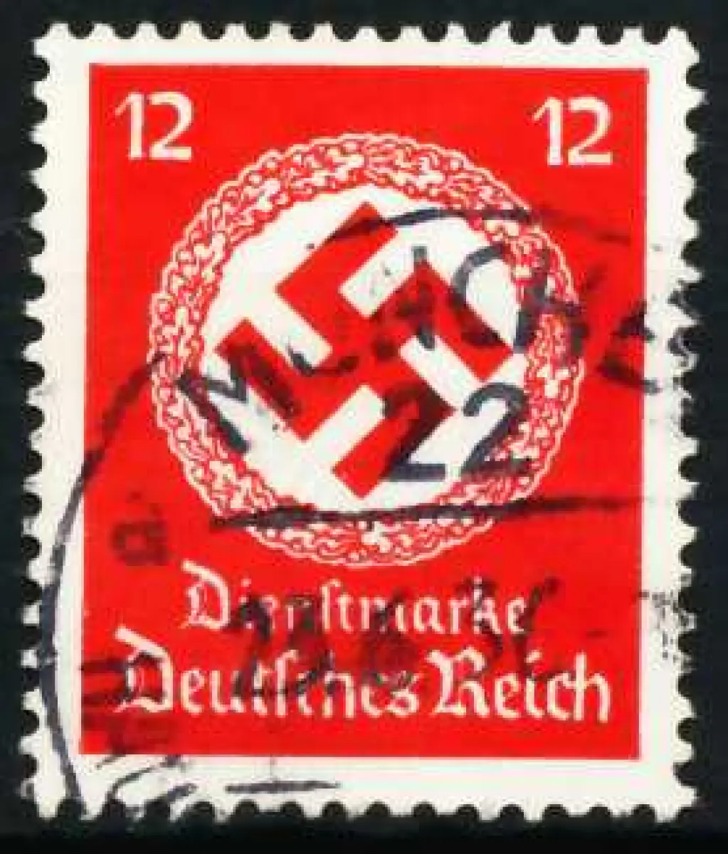 12 Pfg Wert aus der Dienstmarkenausgabe Hakenkreuz im Kreis mit Wasserzeichen Hakenkreuze