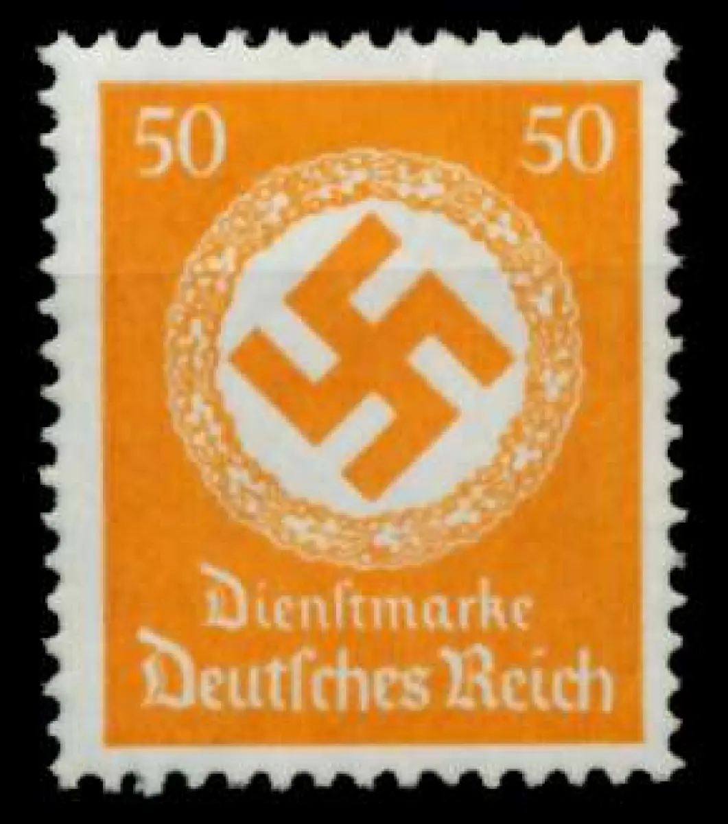 50 Pfg Wert aus der Dienstmarkenausgabe Hakenkreuz im Kreis mit Wasserzeichen Hakenkreuze, senkrechte Gummiriffelung