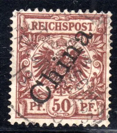 DP China 6 II, sauber gebr. 50 Pf. m. Stpl. K.D. FELDPOSTEXPED DES OSTASIAT...