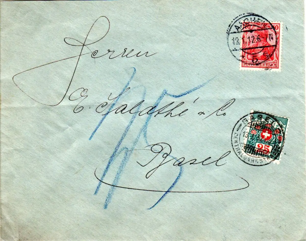DR 1912, 10 Pf. Germania auf Brief v. Aachen m. Schweiz 25 C. Portomarke