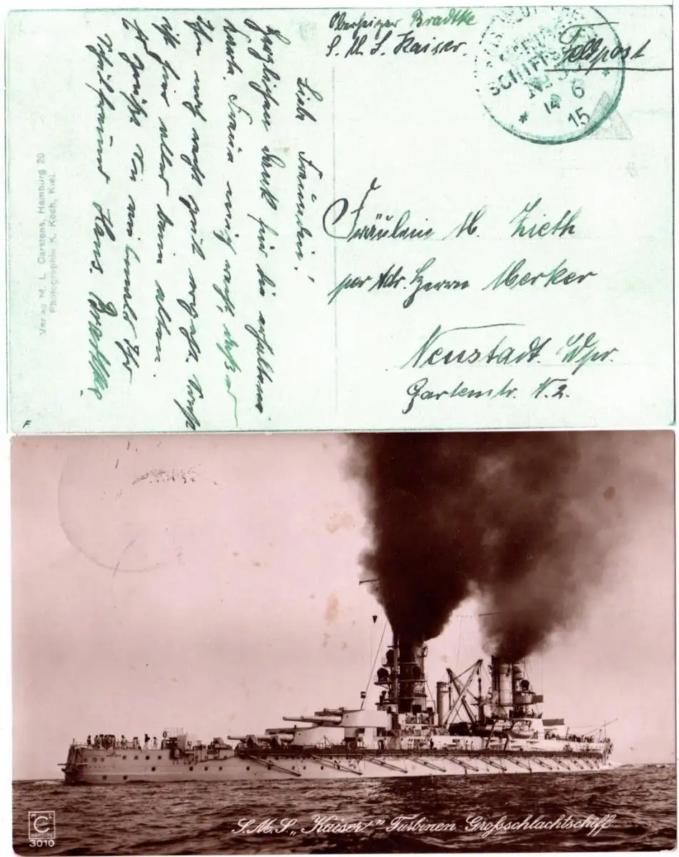 DR 1915, KD Marine Schiffspost No.50 auf FP-AK Großschlachtschiff SMS Kaiser