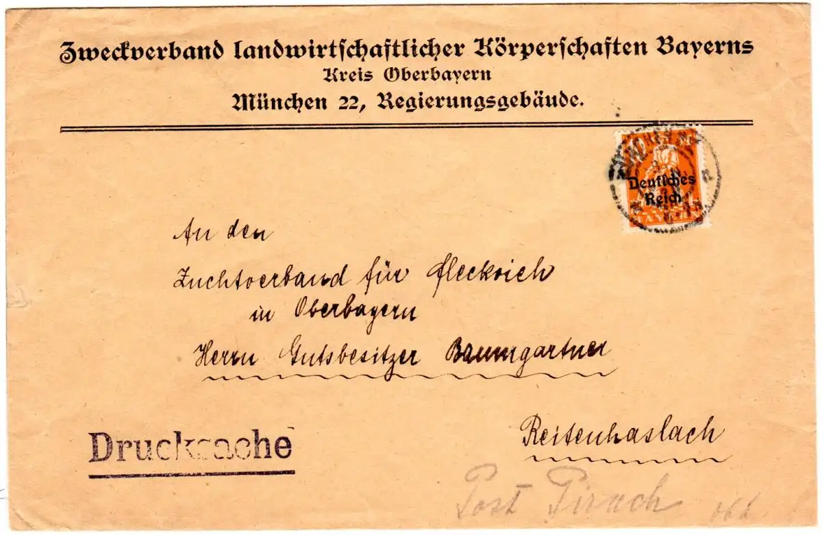Vordruckumschlag Zweckverband landwirtschaftlicher Körperschaften Bayerns an den Zuchtverband f. Fleckvieh Hernn Gutsbesitzer Baumgartner, Reitenhaslach.