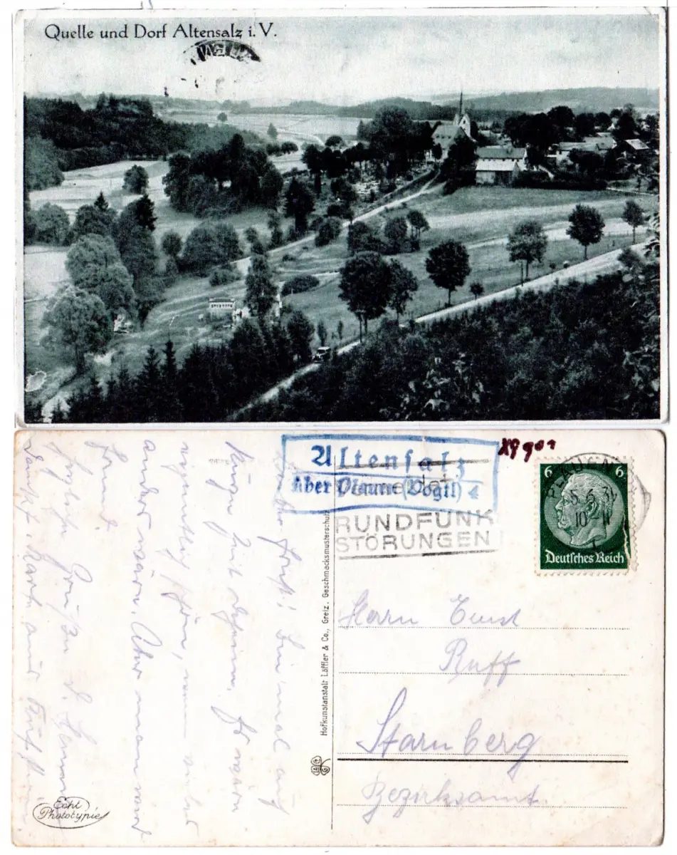 DR 1931, Landpost Stpl. ALTENSALZ über Plauen (Vogtl.) auf sw-AK m. 6 Pf.