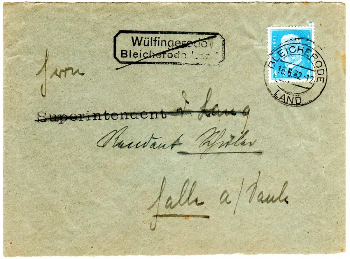 DR 1932, Landpoststpl. WÜLFINGERODE über Bleicherode auf Drucksache Brief m. 4 Pf.