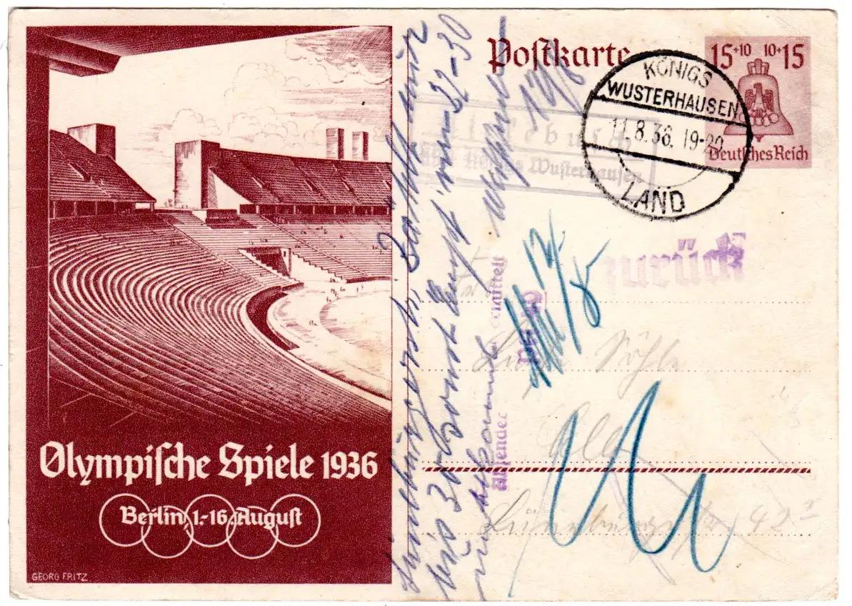 DR 1936, Landpost Stpl. KIEKEBUSCH über Königs Wusterhausen auf Olympia Ganzs.