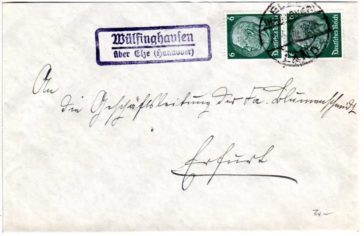 DR 1936, Landpost Stpl. WÜLFINGHAUSEN über Elze (Hannover) auf Brief m. 2x6 Pf.
