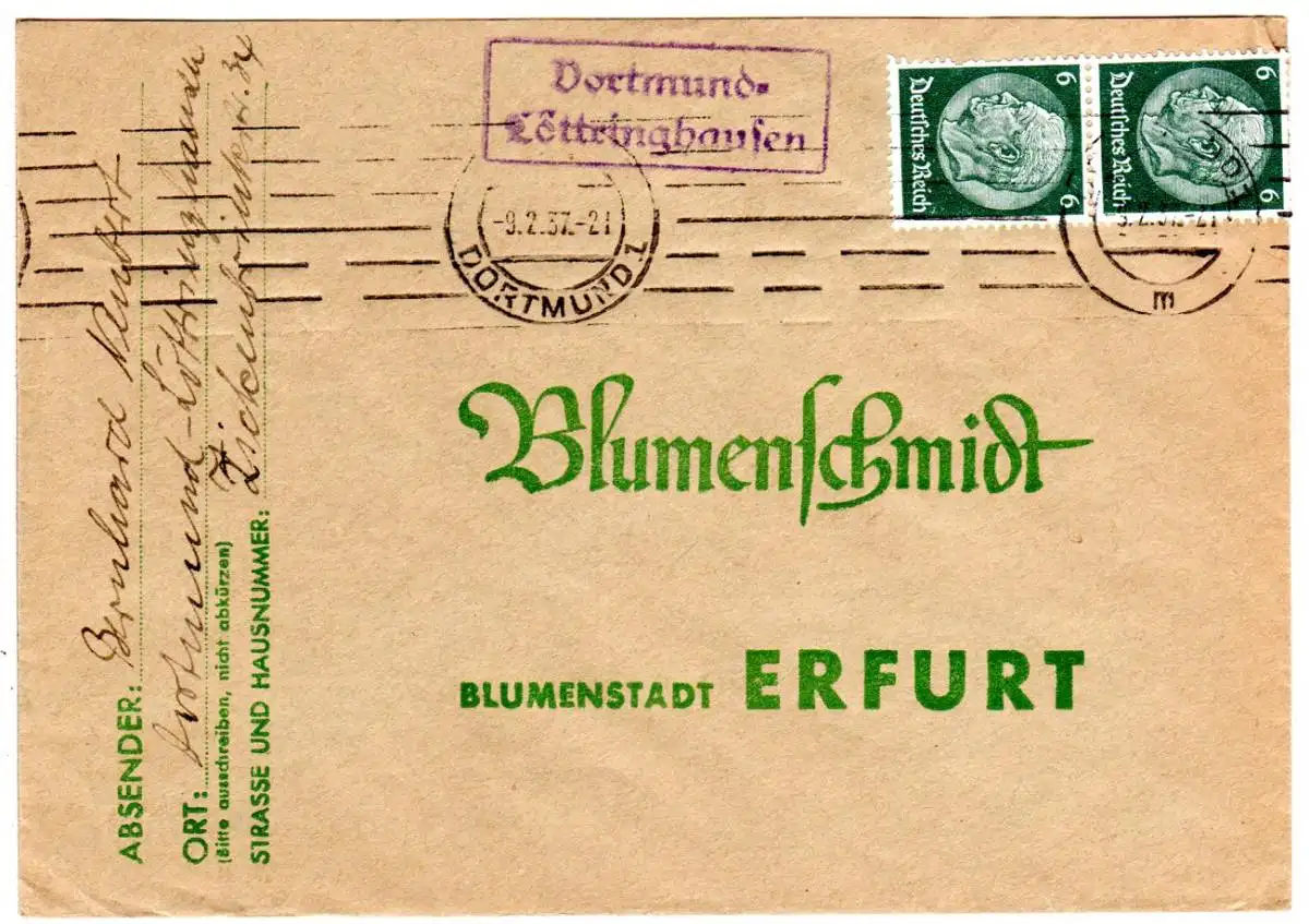 DR 1937, Landpost Stpl. DORTMUND-LÖTTRINGHAUSEN auf Brief m. 2x6 Pf.