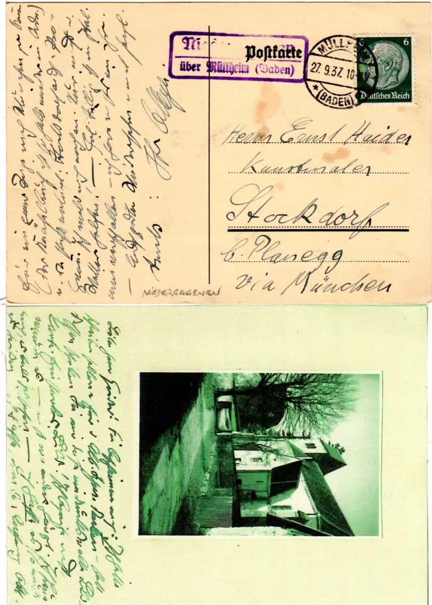 DR 1937, Landpoststempel NIEDEREGGENEN über Müllheim (Baden) auf Karte m. 6 Pf.
