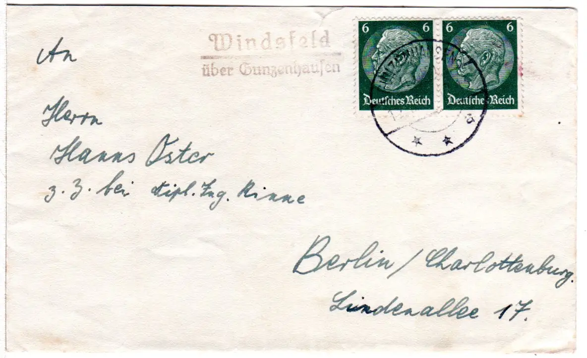 DR 1938, Landpost Stempel WINDSFELD über Gunzenhausen auf Brief m. Paar 6 Pf.
