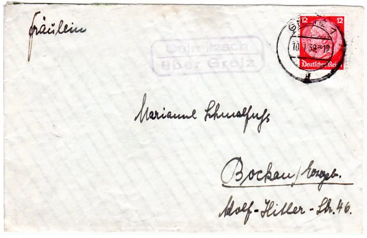 DR 1939, Landpost Stpl. CULMITZSCH über Greiz auf Brief m. 12 Pf.