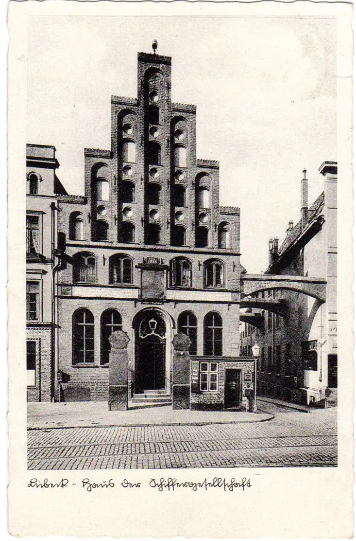 Landpoststellen-II Stempel auf sw-AK Lübeck, Haus der Schiffergesellschaft.