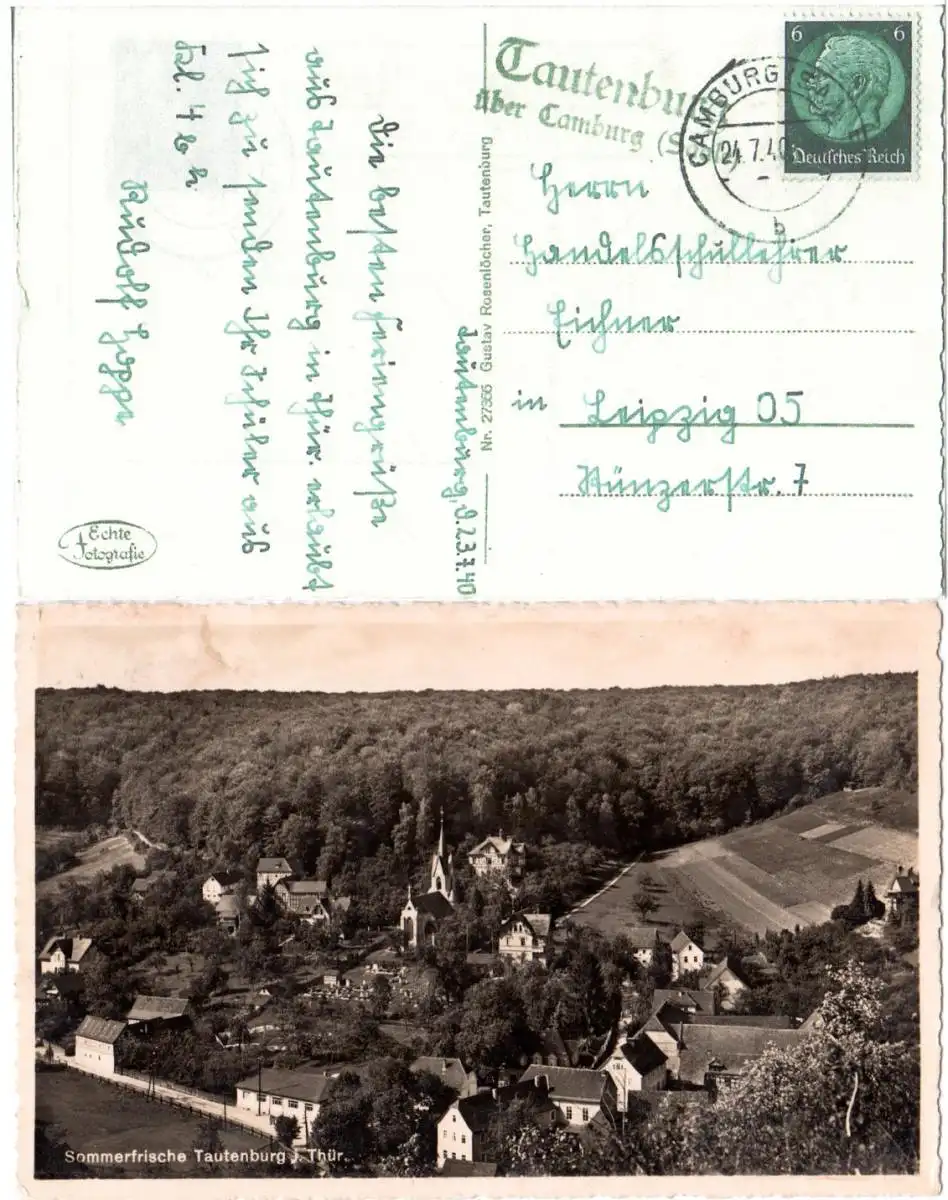 DR 1940, Landpoststpl. TAUTENBURG über Camburg (Saale) auf sw-AK m. 6 Pf.