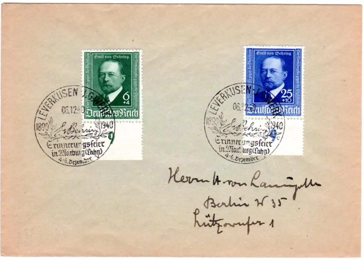 DR 1940, v. Behring 50 J. Diphterie, beide Werte auf Brief m. Leverkusen SoStpl.