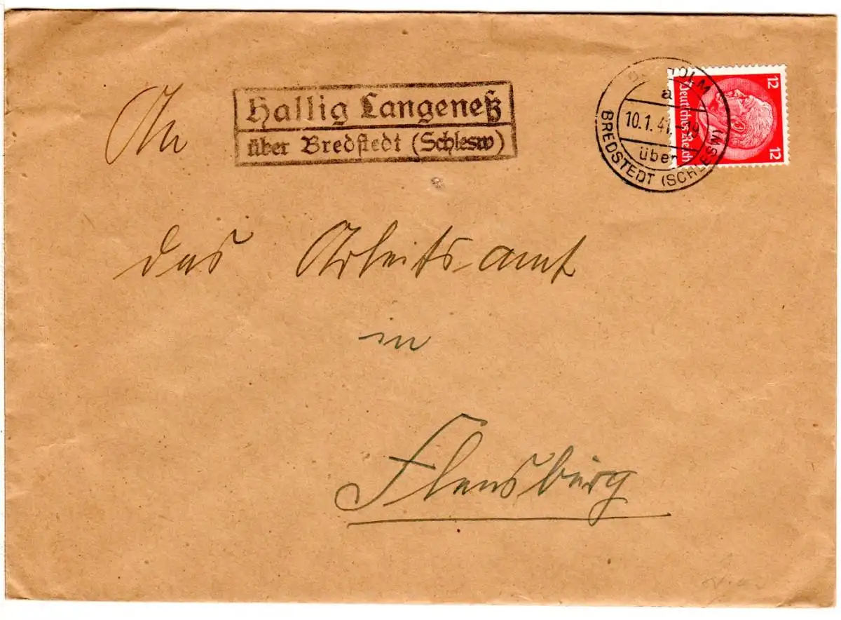 DR 1941, Landpost Stpl. HALLIG LANGENESS über Bredstedt auf Brief m. 12 Pf.