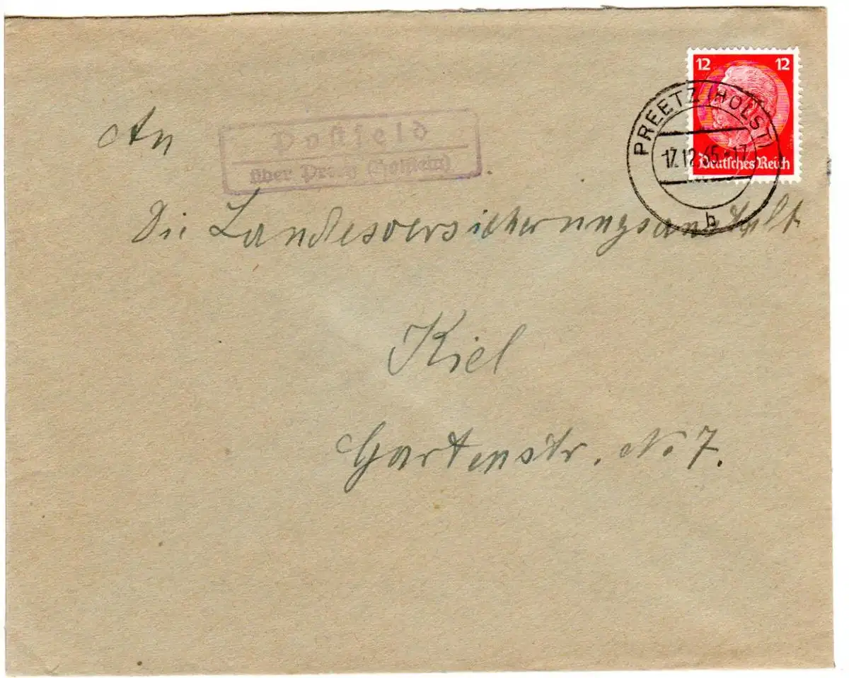 DR 1941, Landpost Stpl. NEEKEN über Zerbst auf Brief m. 12 Pf.