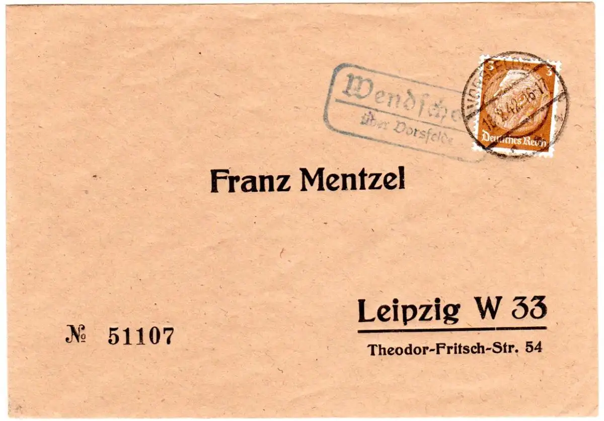 DR 1942, Landpoststpl. WENDSCHOTT über Vorsfelde auf Brief m. 3 Pf.