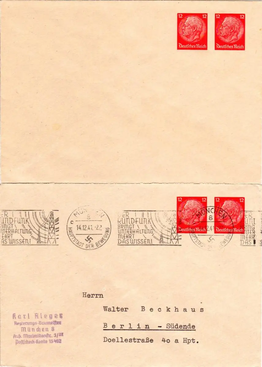 2 gebr. (Stpl. München) / ungebr. Privatganzsachenumschläge (Strahlendorff/Mette Kat. PU 140-A1).