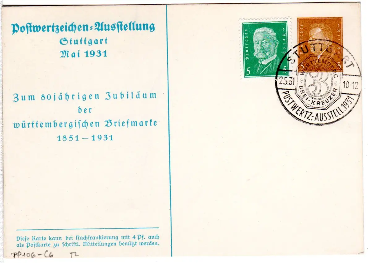 DR, 3 Pf. Privatganzsache Postwertzeichenausstellung Stuttgart Mai 1931