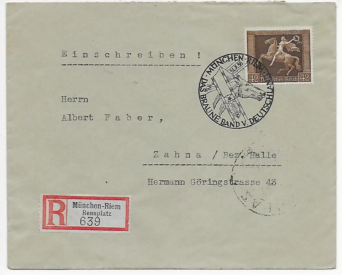 DR: Braunes Band München-Riem, Rennplatz 1938, Einschreiben