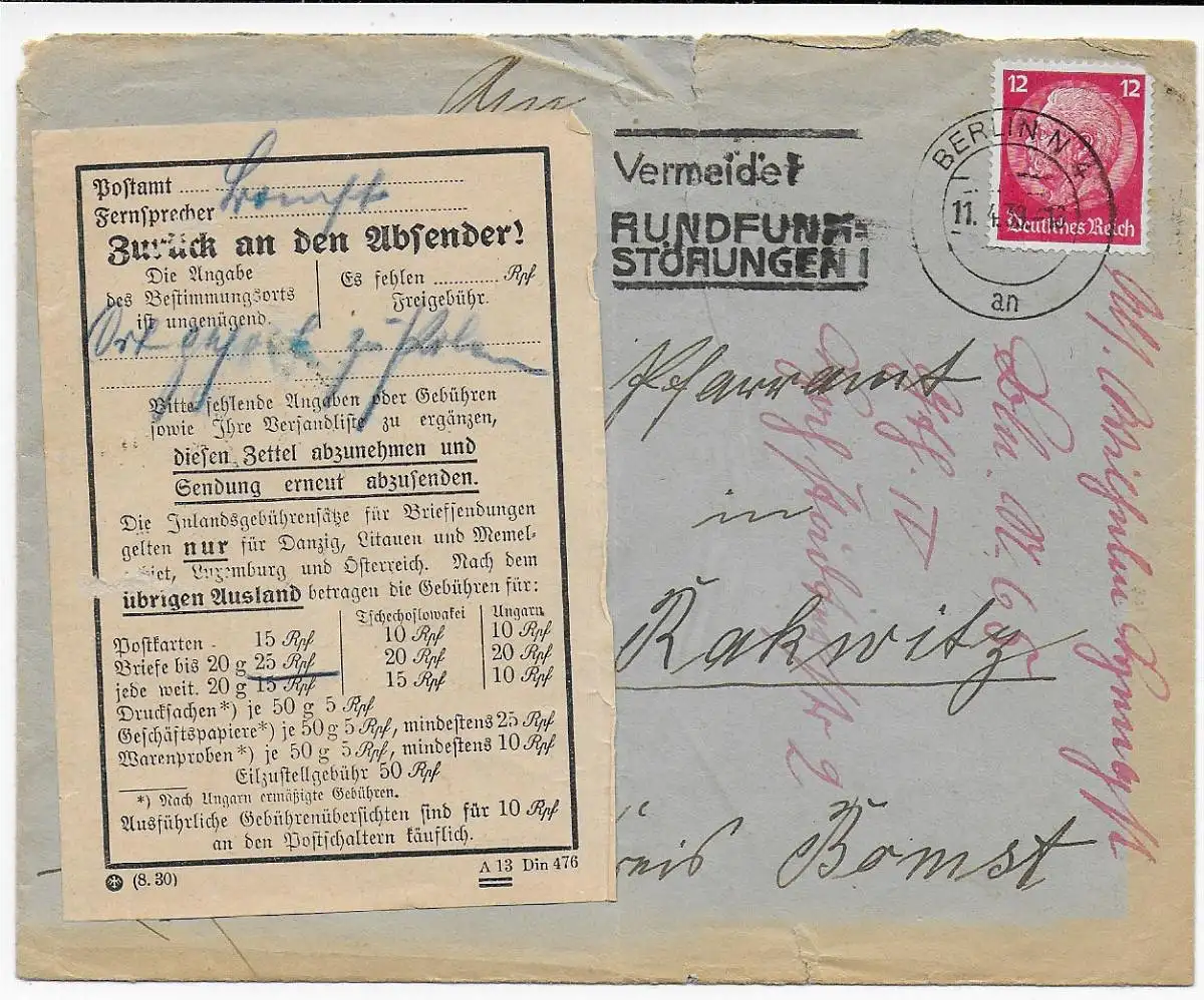 DR: Brief aus Berlin 1939 zurück an Absender, geöffnet - Rückseite !!!