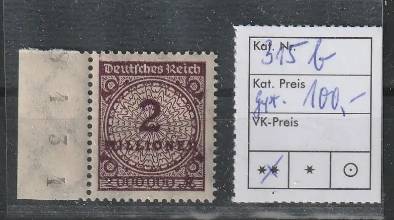 DR/Infla: Nr. 315 in b-Farbe, postfrisch, bestgeprüft Dr. Hochstätter BPP
