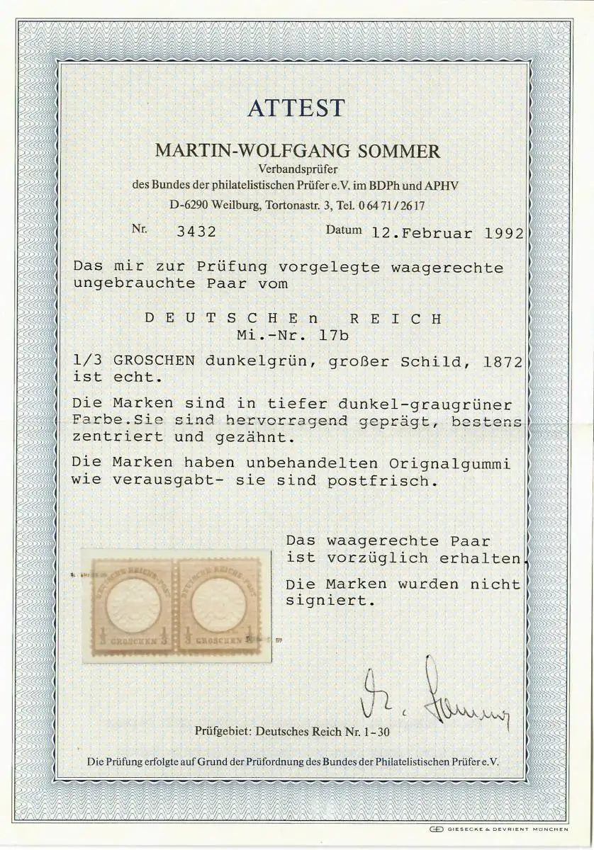 DR: MiNr. 17b, waagrechtes Paar, postfrisch, **, BPP Attest