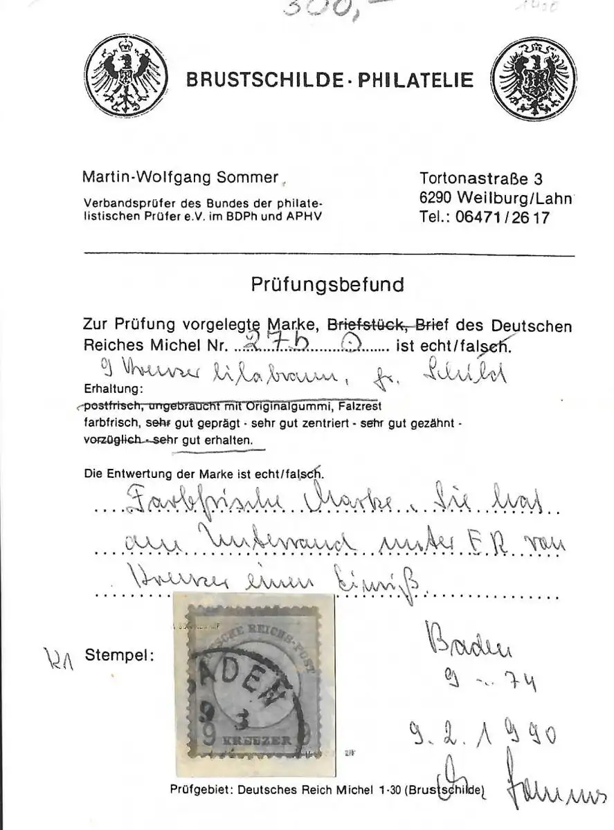 DR: MiNr. 27b gestempelt, Baden, älterer BPP Befund
