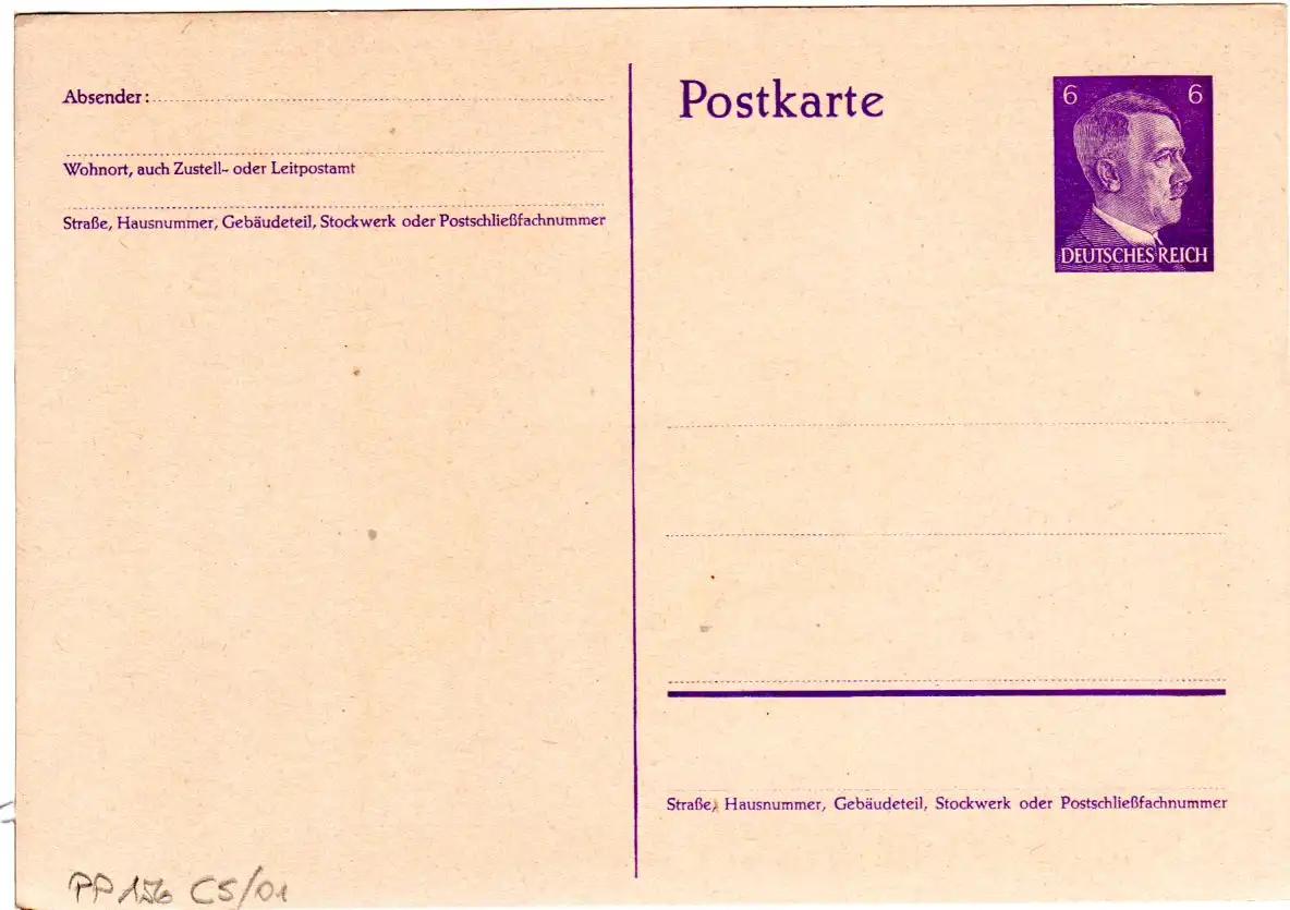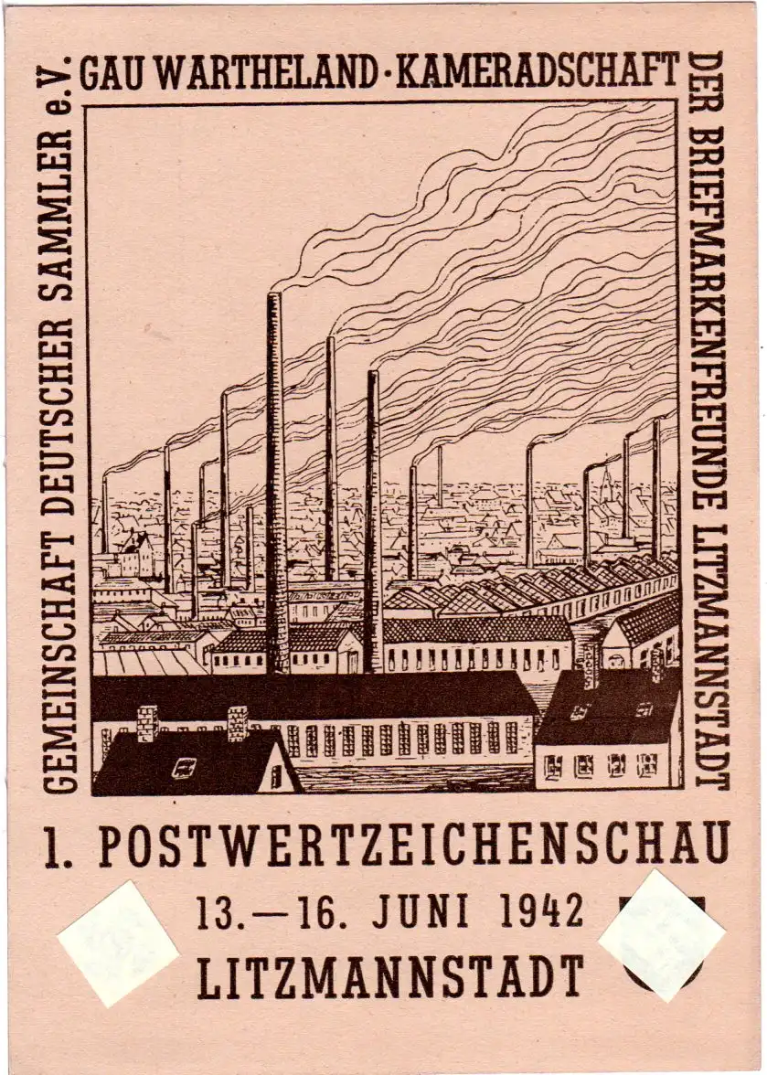 Sauber ungebr. 6 Pf. Privatganzsache (PP 156-C5/01, Hoheitszeichen f. scan abgedeckt) Gemeinschaft Dt. Sammler Gau Wartheland m. Abb. Industriegebäude